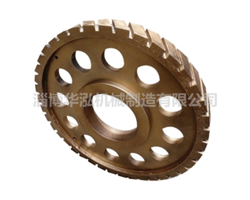 金剛石滾輪修整法 采用電鍍或粉末冶金等方法把大量金剛石顆粒鑲嵌在鋼質(zhì)滾輪表面制成的金剛石滾輪,以一定轉速旋轉(藉以降低滾輪與砂輪的相對速度),對高速旋轉的砂輪表面產(chǎn)生磨削和輾壓作用,使砂輪獲得與滾輪型面吻合的鋒利工作表面。金剛石滾輪制造復雜、造價高,但經(jīng)久耐用、修整效率高,適于在大批量生產(chǎn)中修整磨削特殊成形表面(如螺紋、齒輪和渦輪葉片榫齒等)的砂輪。